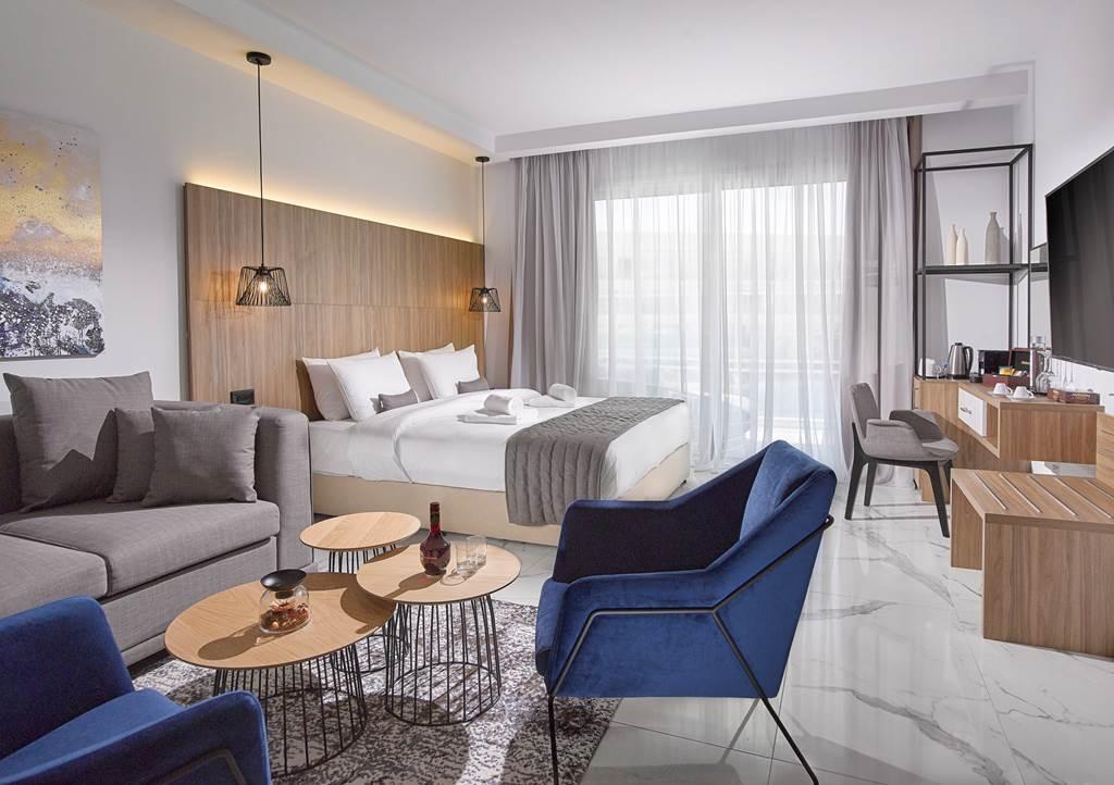 Suity Junior sú najväčšie a najluxusnejšie z izieb a majú elegantný priestor s posedením a moderným vybavením. Vychutnajte si bočný výhľad na more z balkóna a vychutnajte tu si rannú kávu.