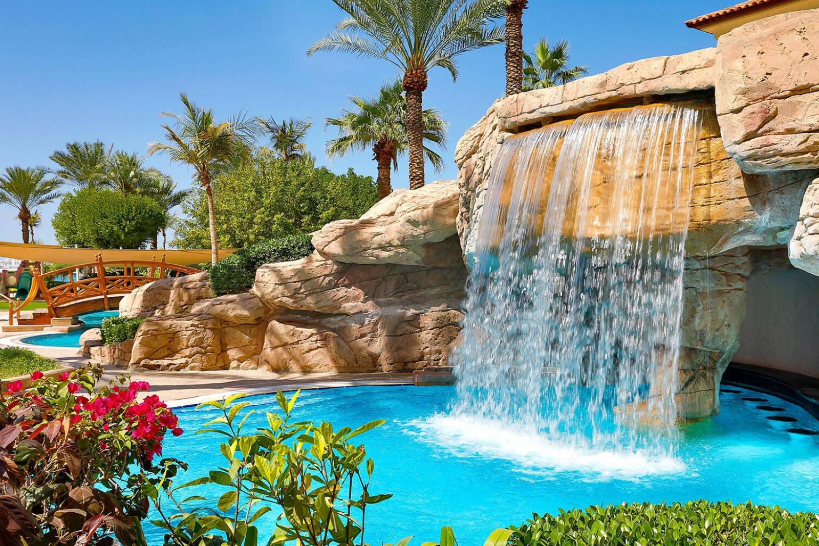 Stredomorskú architektúru dopĺňajú svieže zelené záhrady, kde nájdete šesť krásnych bazénov, vrátane jedného len pre deti. Interiér hotela je dokonale štýlovo zariadený, všetkých 294 izieb a apartmánov je doplnených modernými doplnkami. Všetky izby majú balkón alebo patio s nádherným výhľadom na bazény, záhrady alebo Arabský záliv.