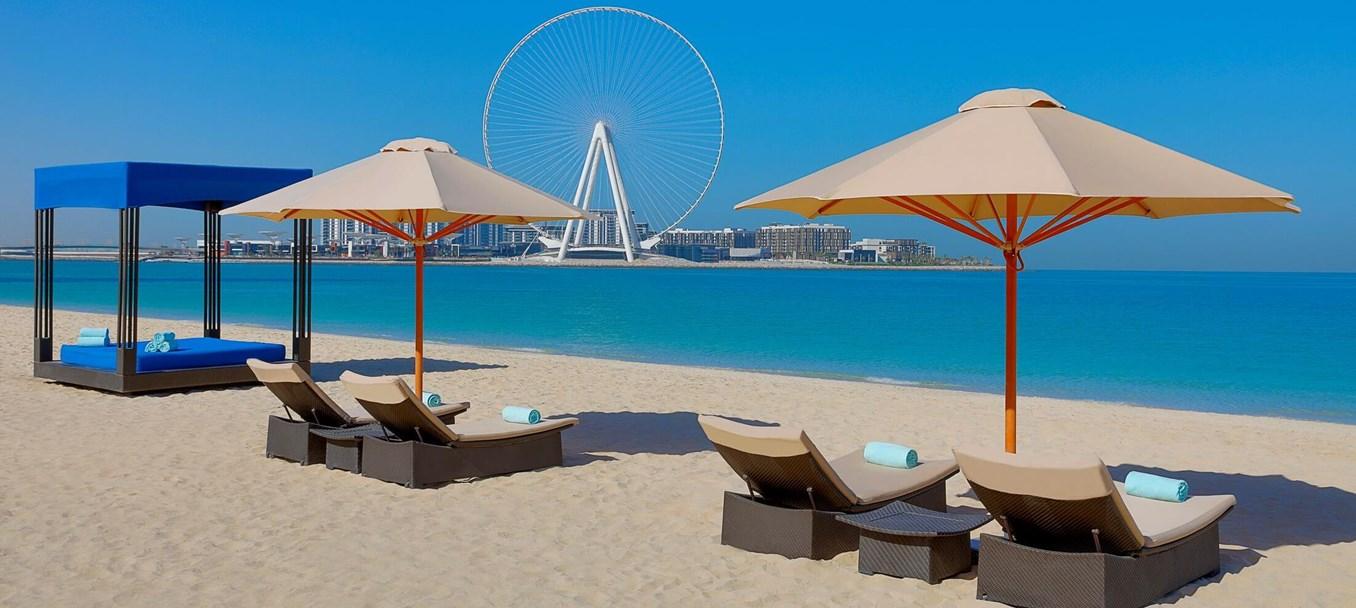 Hotel Ritz Carlton Dubai s vlastnou súkromnou plážou a šiestimi vynikajúcimi bazénmi, z ktorých si môžete vybrať, vrátane jedného pre deti, je ideálnym miestom na posedenie, relaxáciu a nasávanie slnka. V celom rezorte nájdete aj slnečné terasy a ležadlá.