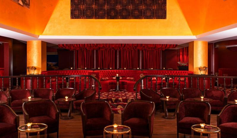 Tento bar a salónik je hotspot hotela pre exkluzívny nočný život s červenou kožou, lešteným tmavým drevom a zdobenými ozdobnými prvkami, ktoré dotvárajú atmosféru.