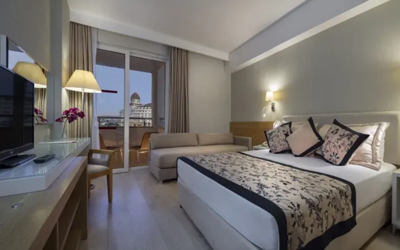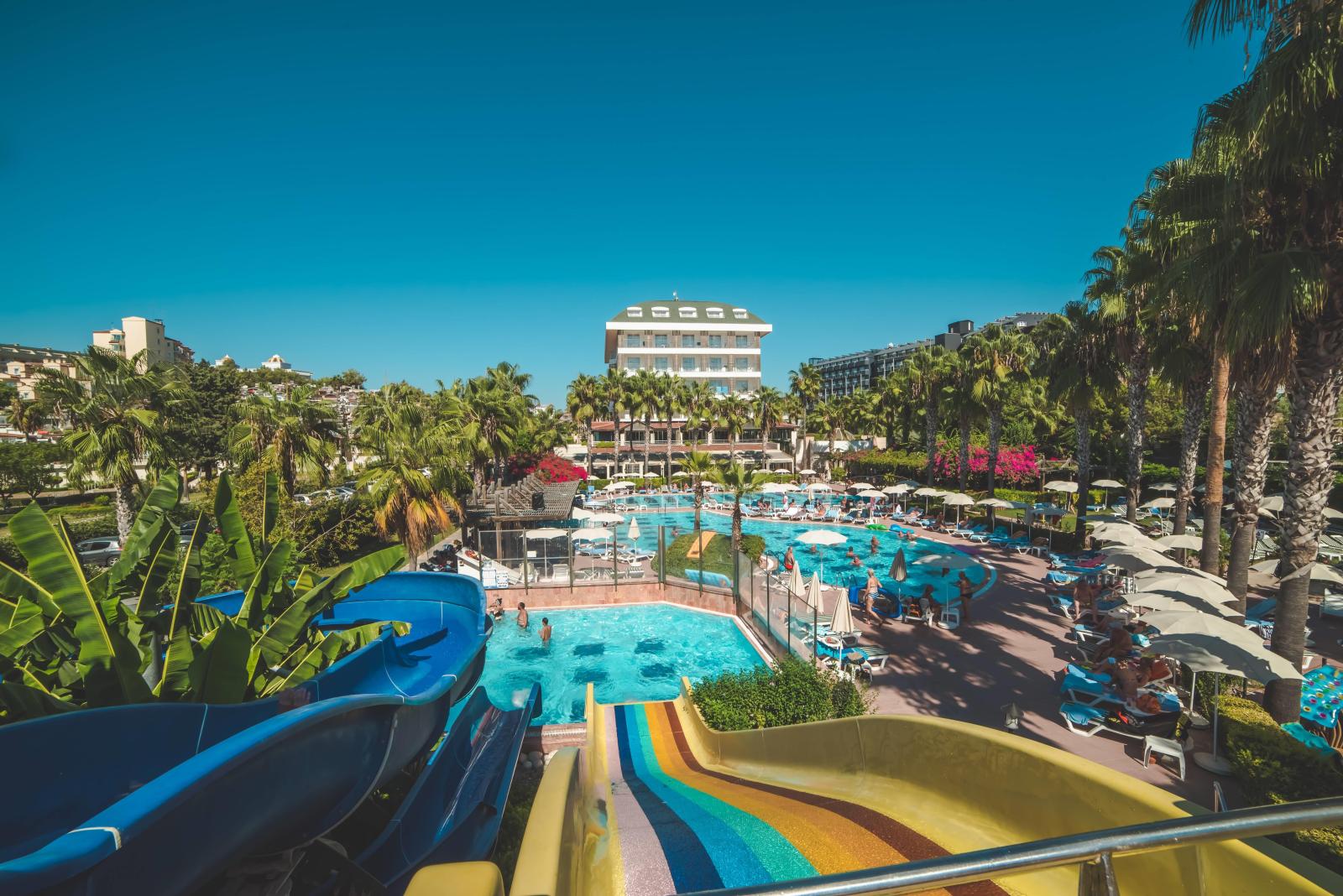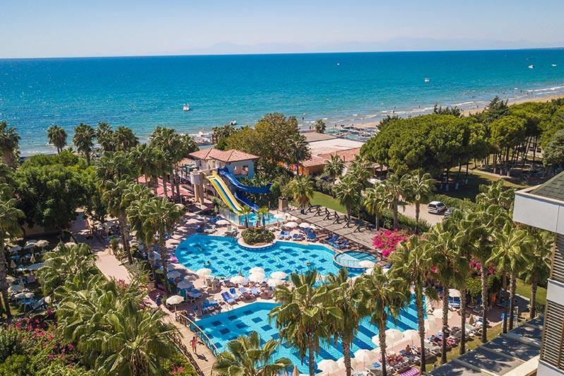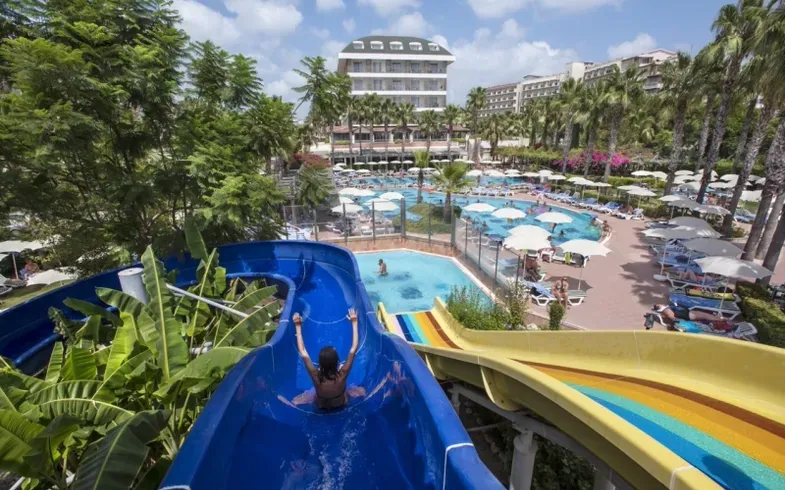 Bazény v Trendy Palm Beach sú také veľké, že ani nepotrebujete more – no aj tak ho máte priamo pred dverami. Pri bazéne sú tobogány pre trochu viac zábavy. Je to ťažká voľba medzi morom a bazénom v Trendy Palm Beach – obe sú na dosah ruky. Hotelové záhrady sa tiahnu až k obrovskej piesočnatej pláži. A keď máte chuť na kultúru alebo kluby, je to 10 minút jazdy do Side, kde máte rímske ruiny a živé nábrežie plné barov.