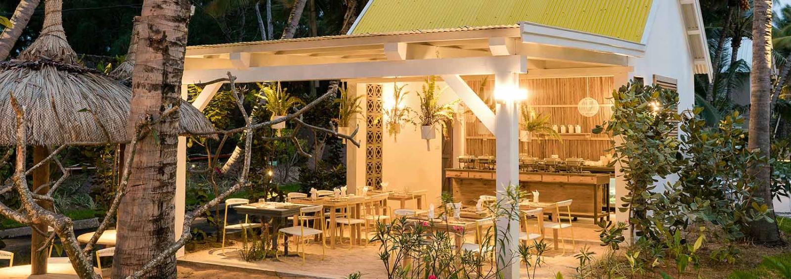 V reštaurácii Le Cocotier s výhľadom na lagúnu Trou d'Eau Douce si užijete priateľskú atmosféru súčasného štýlu. Terasa reštaurácie, ktorá ponúka rôzne európske alebo tradičné maurícijské jedlá, sa otvára do záhrady s výhľadom na ostrov Ile aux Cerfs; bufetová časť zobrazujúca húfy rýb plávajúce pozdĺž bielych stien.