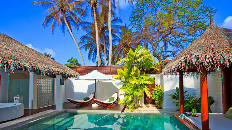 Zažite bezkonkurenčný luxus v plážovej vile s bazénom (96 m²), intímnom raji so súkromným ponorným bazénom. Nachádza sa pri nedotknutej pláži a ponúka perfektný výhľad na sledovanie fascinujúcich západov slnka nad Indickým oceánom. Doprajte si luxusnú vonkajšiu kúpeľňu s vaňou a dažďovou sprchou a vylepšite si zážitok vybavením, ako je Wi-Fi na izbe, LCD TV, minibar a kúpeľňové produkty L’Occitane.