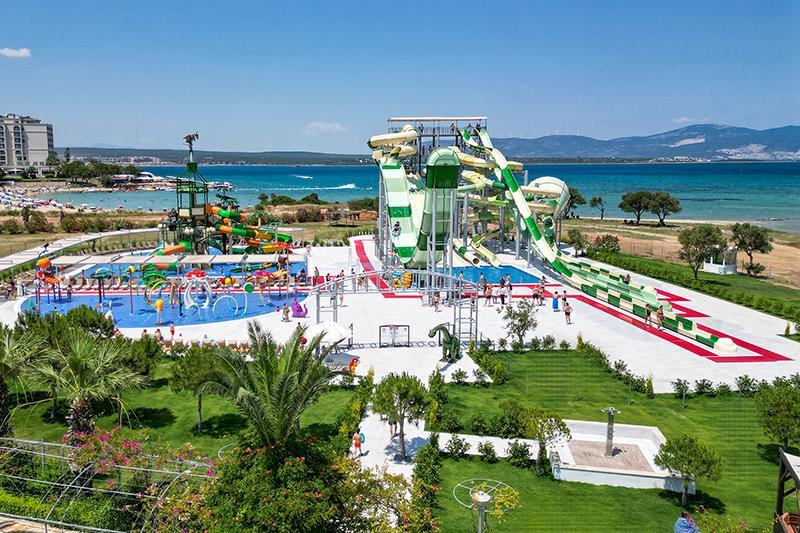 Doprajte sebe a svojim blízkym luxusnú all inclusive dovolenku pri mori vo Venosa Beach Resort & Spa v Altinkum! Úžasný rezort Venosa Beach & Spa sa hrdo pýši výhľadom na vlastnú súkromnú pláž ocenenú modrou vlajkou.