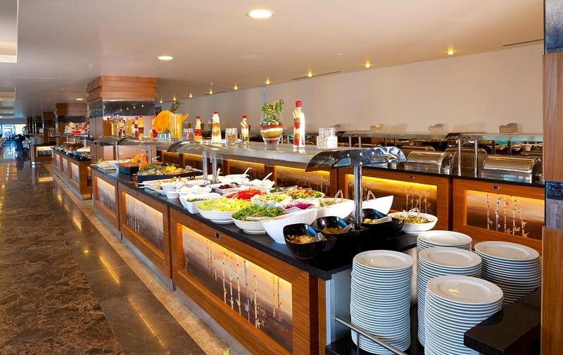 Reštaurácia je vaším každodenným prístavom v čase jedla a ponúka jedlá formou bufetu s miestnou a medzinárodnou príchuťou. Prípadne si môžete rezervovať stôl deň vopred a vychutnať si gurmánsku kuchyňu na večeru v a la carte reštauráciách The Sofra, Mermaid Seafood, Serenada Italian, El Sobrozo Mexican a Kadal India. Snack Restaurant ponúka ľahké jedlá od 12:300 do 16:00 a môžete si tiež vychutnať hamburger a hranolky od 16:00 do 17:00, gozleme od 12:00 do 16:30 a nočný bufet od 23:00 do 24:00: 00 s polievkou, cestovinami, šalátom, sendvičmi a ovocím. Cukráreň je vaším cieľom od 12:00 do 18:00 na sladké dobroty alebo sa môžete zastaviť v Snack bare od 12:00 na lákavé občerstvenie. Lobby bar, bar pri bazéne, plážový bar a disco bar s nepretržitou prevádzkou vás dopĺňajú miestnymi a zahraničnými alkoholickými a nealkoholickými nápojmi. Večerná zábava zahŕňa predstavenia a turecké brušné tance a nočný tanec na diskotéke.