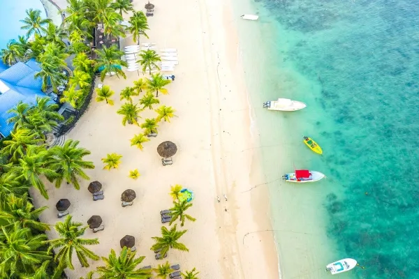 na severozápadnom pobreží ostrova • chránený pred vetrami • na polceste medzi živým letoviskom Grand Baie a hlavným mestom Port Louis • od letiska cca 60 km (cca 70 min)