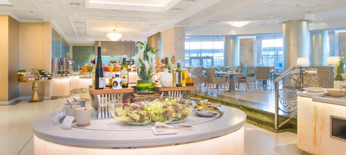 Vyberte si zo širokej ponuky medzinárodných kuchýň v tejto štýlovej, uvoľnenej reštaurácii - spolu s dobre zásobeným bufetom. Veľké okná zobrazujú areál hotela.