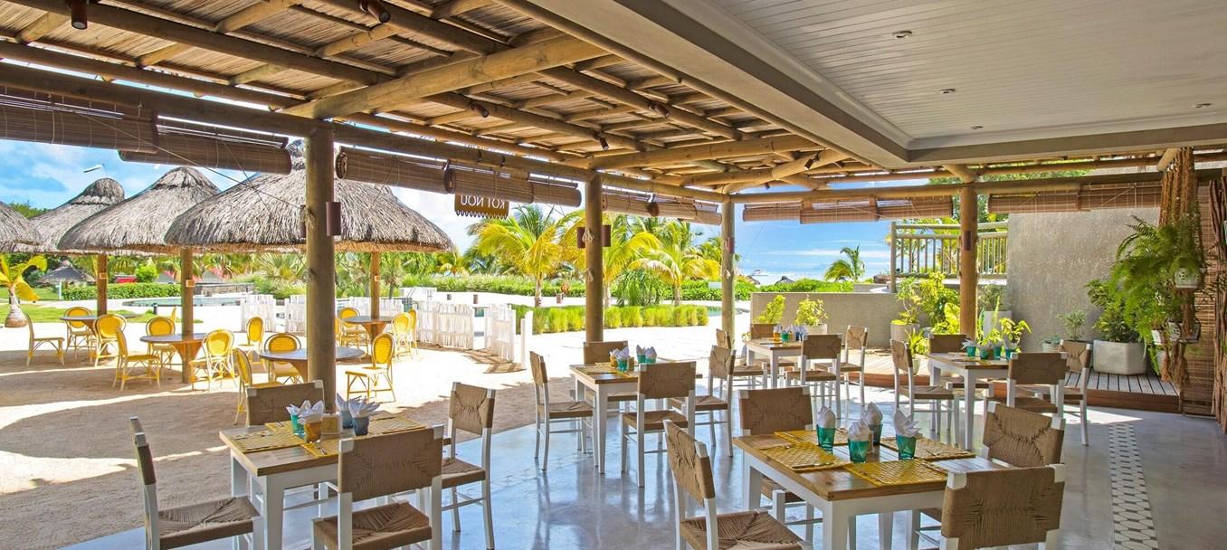 Kultúrna rozmanitosť ostrova je oslavovaná v piatich tematických reštauráciách s kreolskými názvami ako „Karay“ a „Lor Disab“, kde môžete ochutnať zmes exotických chutí fusion kuchyne.